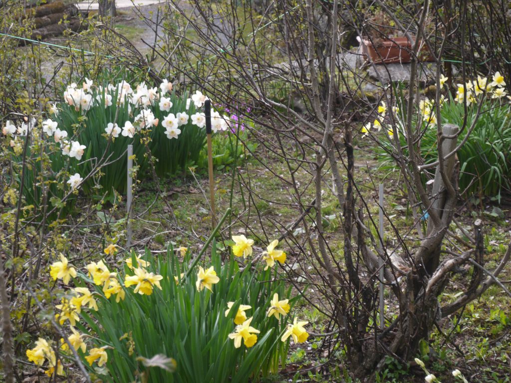 標高1600mのこの高みもようやく春の陽射しが温かく、また庭の花壇の花々も、ふたつ三つ開花が続きます。